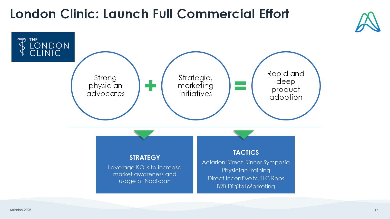 Aclarion 2025 17 London Clinic: Launch Full Commercial Effort Strong physician advocates Strategic, marketing initiatives Rapid and deep product adoption STRATEGY Leverage KOLs to increase market awareness and usage of Nociscan TACTICS Aclarion Direct Dinner Symposia Physician Training Direct Incentive to TLC Reps B2B Digital Marketing