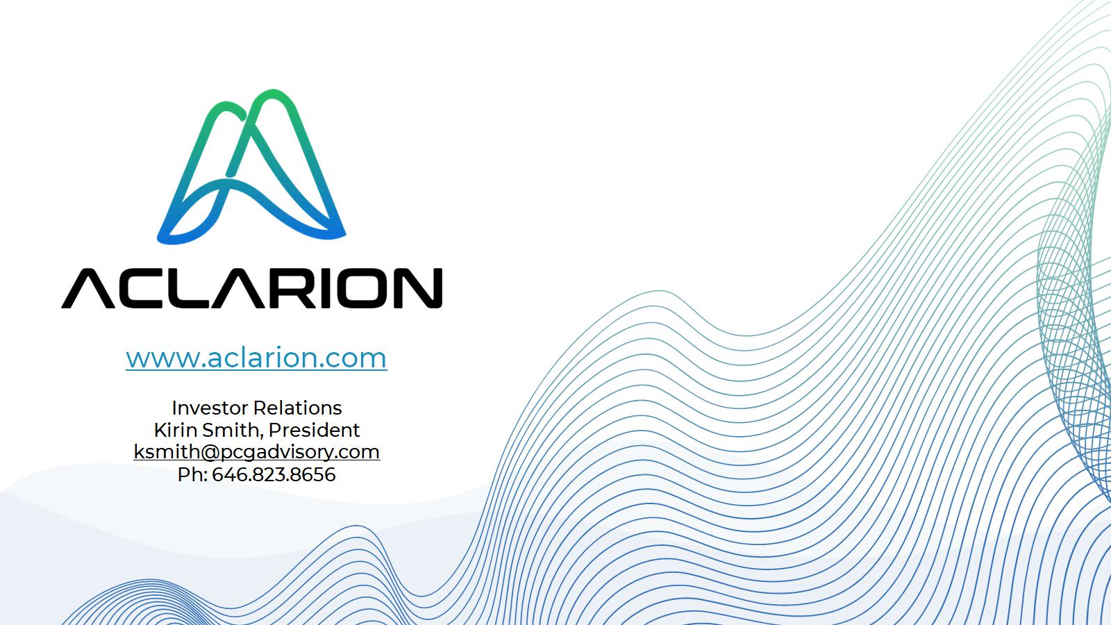 www.aclarion.com Investor Relations Kirin Smith, President ksmith@pcgadvisory.com Ph: 646.823.8656