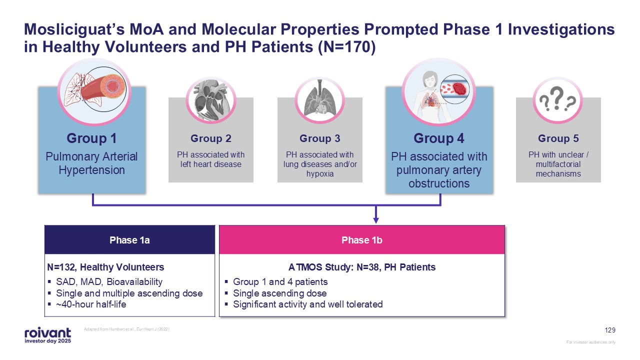 128  A Brief Reminder of How We Got Here and What’s Next…  1. A separate, open-label Phase 2 study (PHactor), is planned to evaluate the tolerability and safety of inhaled mosliciguat in combination with inhaled treprostinil in participants with PH-ILD (n=20). Note: All drugs are investigational and subject to regulatory approvals. All catalyst timings are approximate, based on current expectations and, where applicable, contingent on FDA feedback, and may be subject to change. All references are to calendar years.  Anticipated topline results from Phase 2 PHocus study in PH-ILD  2H 2026  Pulmovant in-licenses mosliciguat from Bayer  July 2023  Late 2025  Imminent initiation of Phase 2 PHactor1 study evaluating mosliciguat in combo with inhaled treprostinil in PH-ILD patients  Discovery of mosliciguat at Bayer  2012  Unveiling of mosliciguat program, presentation of Phase 1b ATMOS data at ERS and announced upcoming initiation of global Phase 2 PHocus study in PH-ILD  3Q 2024  Conducting Phase 1 healthy volunteers and Phase 1b ATMOS study  2019-2022