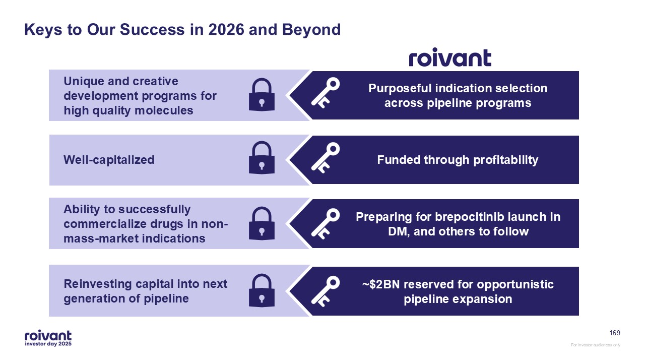 169  Keys to Our Success in 2026 and Beyond  Well-capitalized  Funded through profitability  Unique and creative development programs for high quality molecules  Purposeful indication selection across pipeline programs  Ability to successfully commercialize drugs in non-mass-market indications  Preparing for brepocitinib launch in DM, and others to follow  Reinvesting capital into next generation of pipeline  ~$2BN reserved for opportunistic pipeline expansion