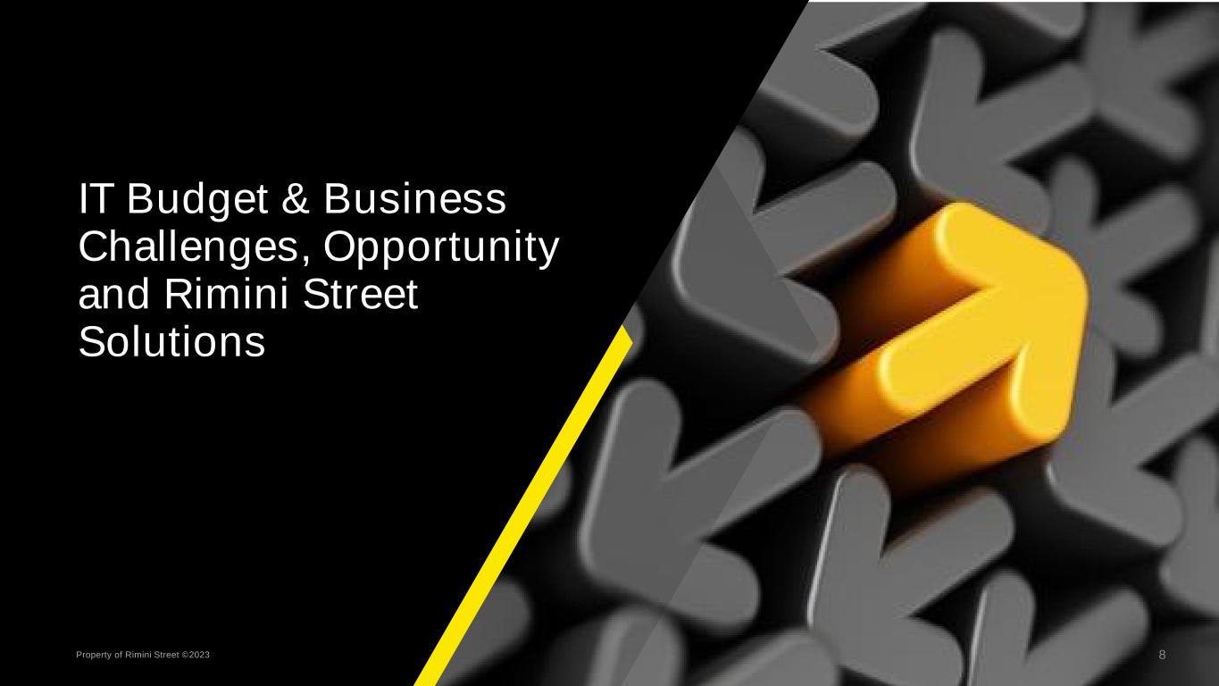 IT Budget & Business Challenges, Opportunity and Rimini Street Solutions Property of Rimini Street ©2023 8
