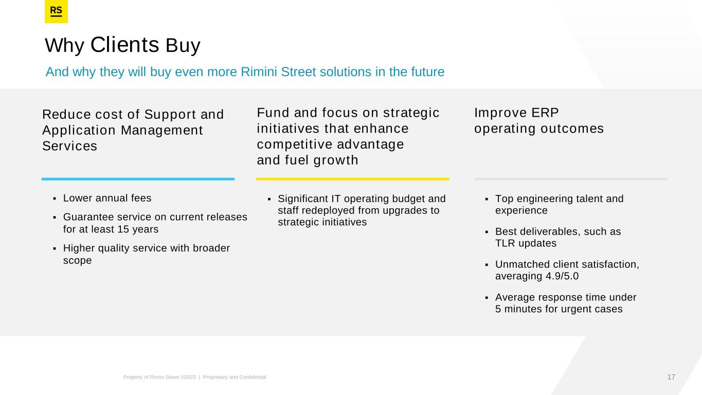 Why Clients Buy Property of Rimini Street ©2023 | Proprietary and Confidential 15