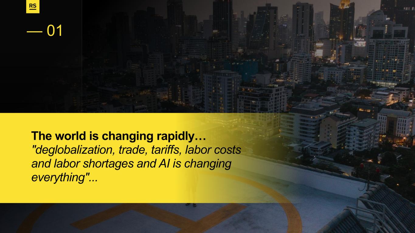 — 01 The world is changing rapidly… "deglobalization, trade, tariffs, labor costs and labor shortages and AI is changing everything"...