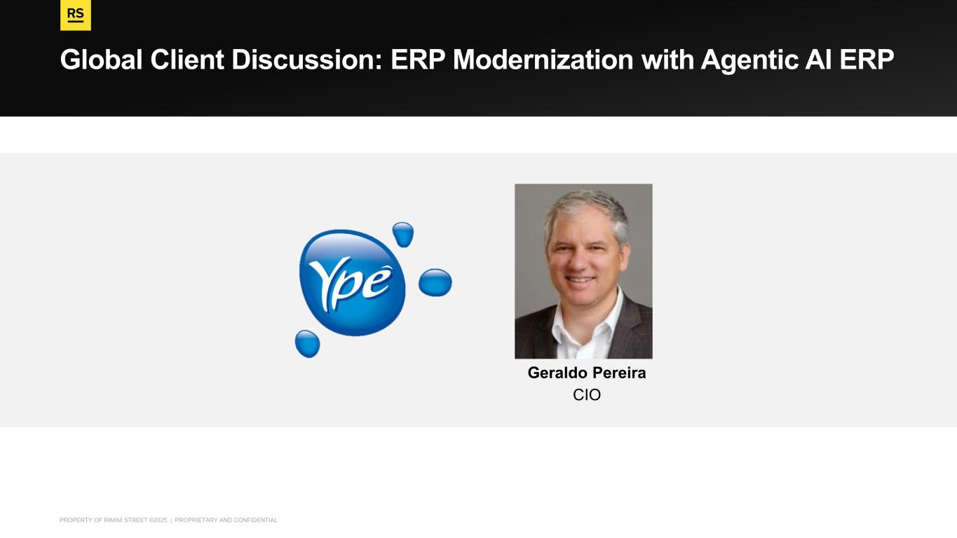 PROPERTY OF RIMINI STREET ©2025 | PROPRIETARY AND CONFIDENTIAL Global Client Discussion: ERP Modernization with Agentic AI ERP Geraldo Pereira CIO