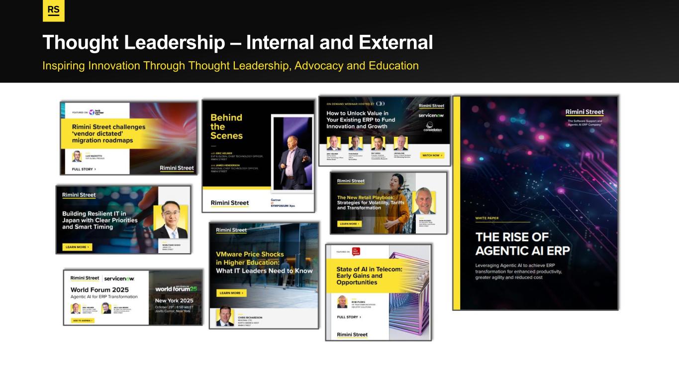 PROPERTY OF RIMINI STREET ©2025 | PROPRIETARY AND CONFIDENTIAL Inspiring Innovation Through Thought Leadership, Advocacy and Education Thought Leadership – Internal and External