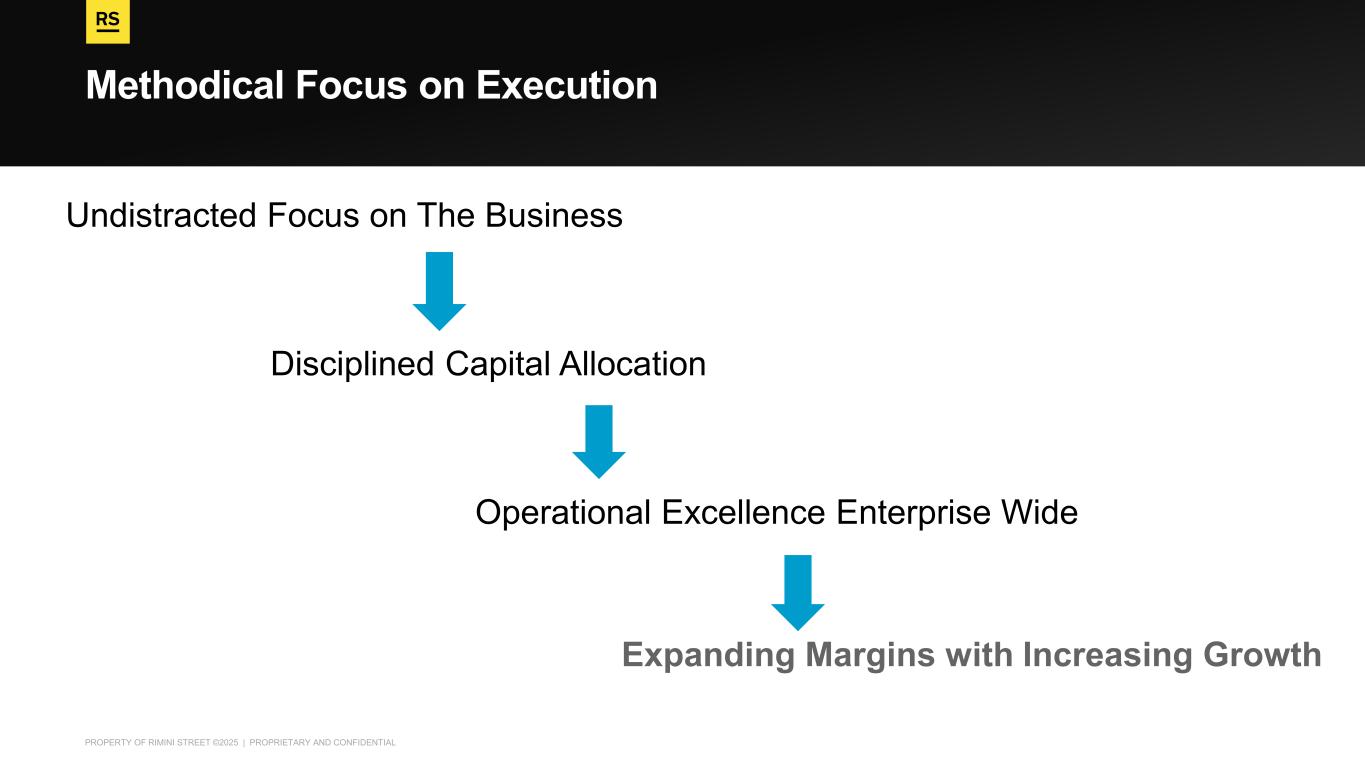 PROPERTY OF RIMINI STREET ©2025 | PROPRIETARY AND CONFIDENTIAL Methodical Focus on Execution Undistracted Focus on The Business Disciplined Capital Allocation Operational Excellence Enterprise Wide Expanding Margins with Increasing Growth