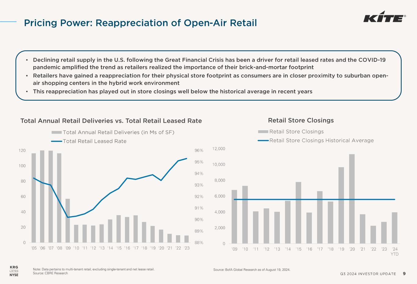 • • • Note: Data pertains to multi-tenant retail, excluding single-tenant and net lease retail. Source: CBRE Research Source: BofA Global Research as of August 19, 2024.