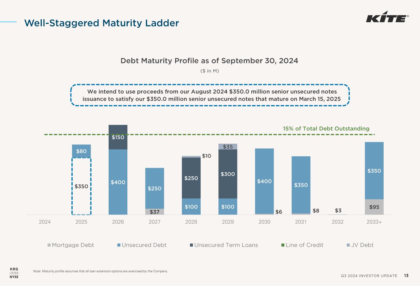 2024 2025 2026 2027 2028 2029 2030 2031 2032 2033+ Note: Maturity profile assumes that all loan extension options are exercised by the Company.