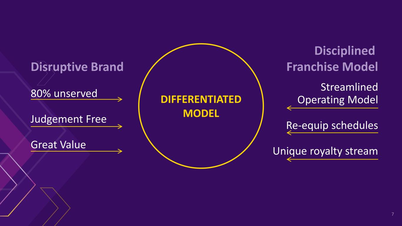 DIFFERENTIATED MODEL Disruptive Brand 80% unserved Judgement Free Great Value Streamlined Operating Model Re-equip schedules Unique royalty stream Disciplined Franchise Model 7