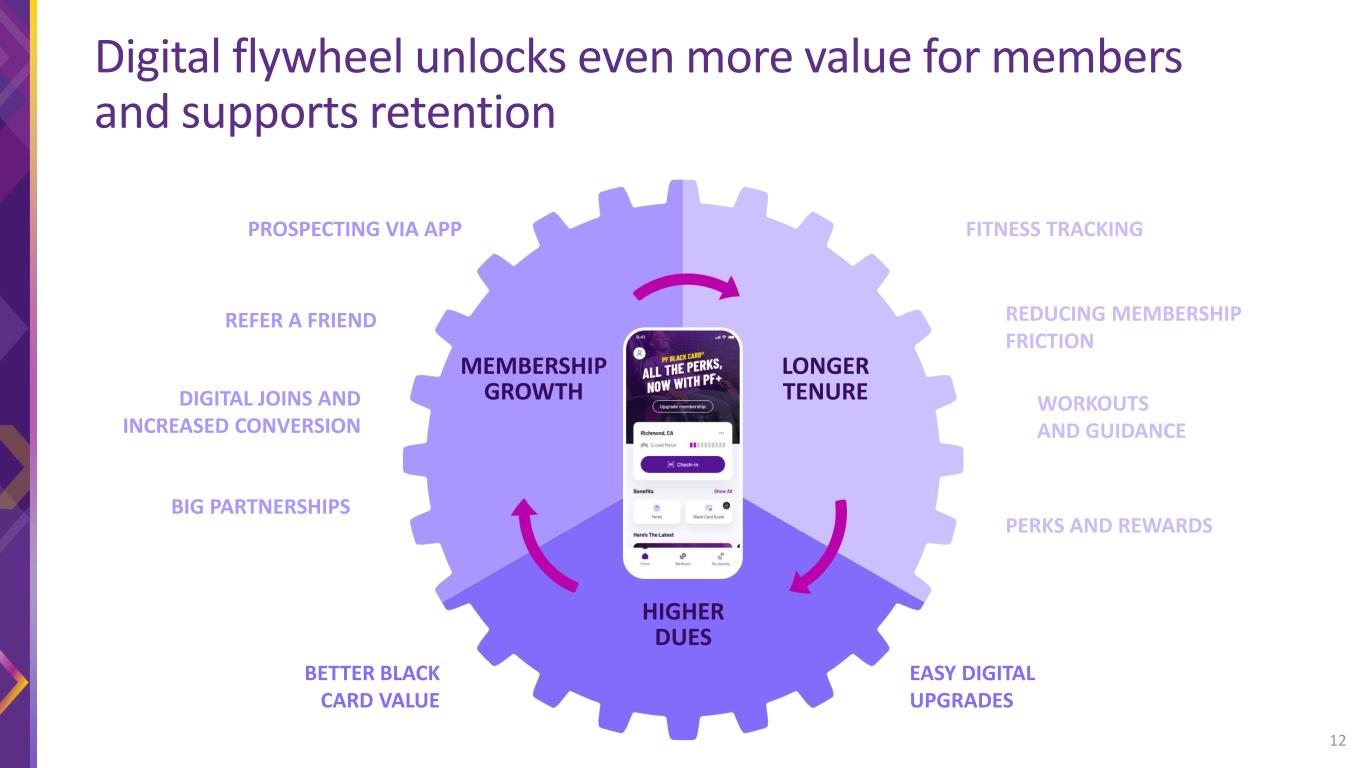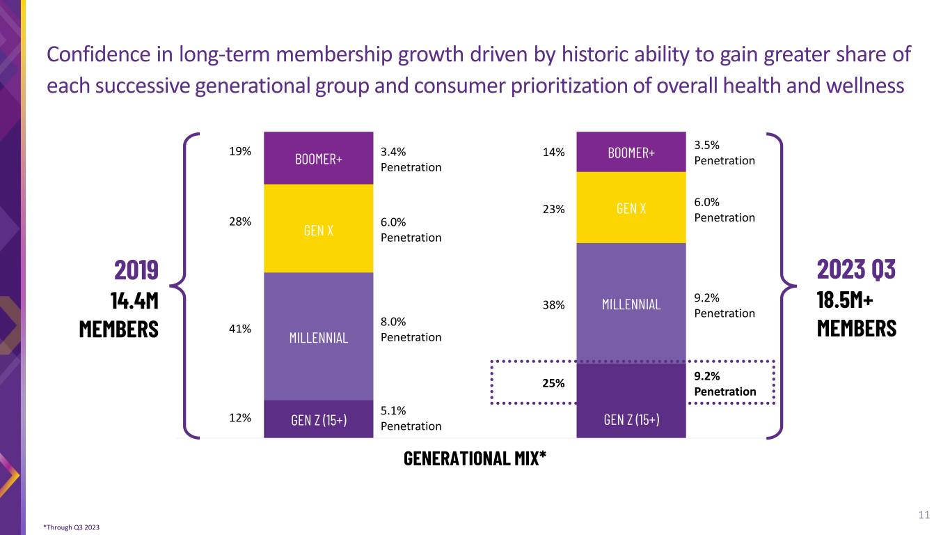 Confidence in long-term membership growth driven by historic ability to gain greater share of each successive generational group and consumer prioritization of overall health and wellness GEN X MILLENNIAL GEN Z (15+) BOOMER+ GEN X MILLENNIAL GEN Z (15+) BOOMER+ GENERATIONAL MIX* 2019 14.4M MEMBERS 2023 Q3 18.5M+ MEMBERS 3.4% Penetration 6.0% Penetration 8.0% Penetration 5.1% Penetration 19% 28% 41% 12% 3.5% Penetration 6.0% Penetration 9.2% Penetration 9.2% Penetration 14% 23% 38% 25% *Through Q3 2023 11
