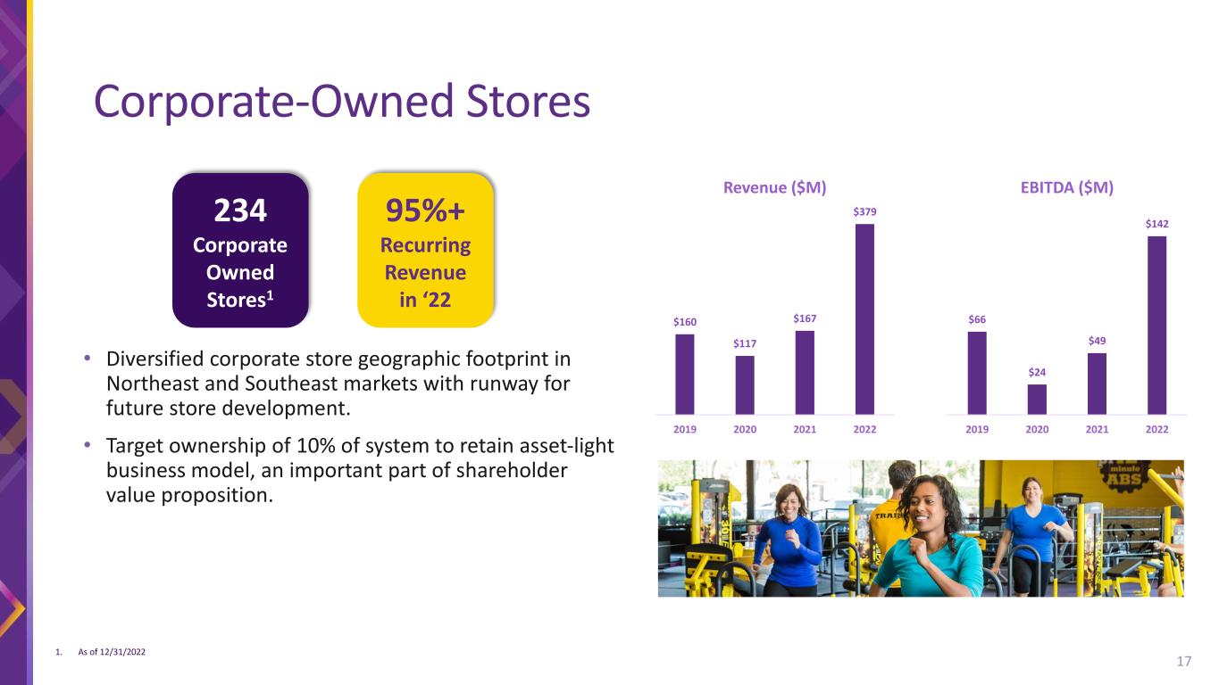 Corporate-Owned Stores • Diversified corporate store geographic footprint in Northeast and Southeast markets with runway for future store development. • Target ownership of 10% of system to retain asset-light business model, an important part of shareholder value proposition. $160 $117 $167 $379 2019 2020 2021 2022 Revenue ($M) $66 $24 $49 $142 2019 2020 2021 2022 EBITDA ($M) 17 234 Corporate Owned Stores1 95%+ Recurring Revenue in ‘22 1. As of 12/31/2022