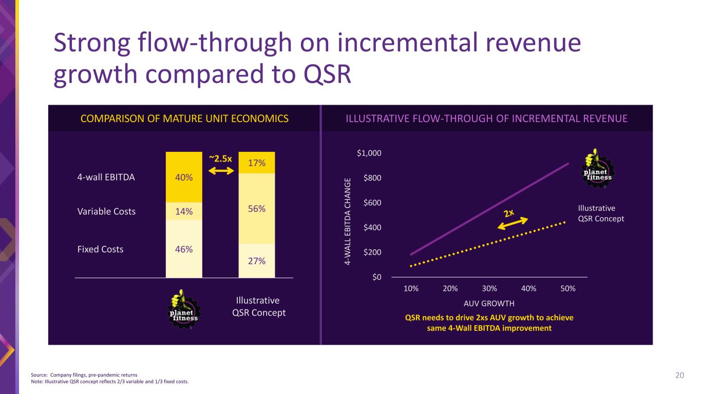 Strong flow-through on incremental revenue growth compared to QSR COMPARISON OF MATURE UNIT ECONOMICS ILLUSTRATIVE FLOW-THROUGH OF INCREMENTAL REVENUE 46% 27% 14% 56% 40% 17% 4-wall EBITDA Variable Costs Fixed Costs Illustrative QSR Concept ~2.5x $0 $200 $400 $600 $800 $1,000 10% 20% 30% 40% 50% 4 -W A LL E B IT D A C H A N G E AUV GROWTH QSR needs to drive 2xs AUV growth to achieve same 4-Wall EBITDA improvement Illustrative QSR Concept Source: Company filings, pre-pandemic returns Note: Illustrative QSR concept reflects 2/3 variable and 1/3 fixed costs. 20