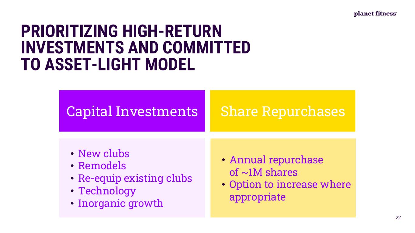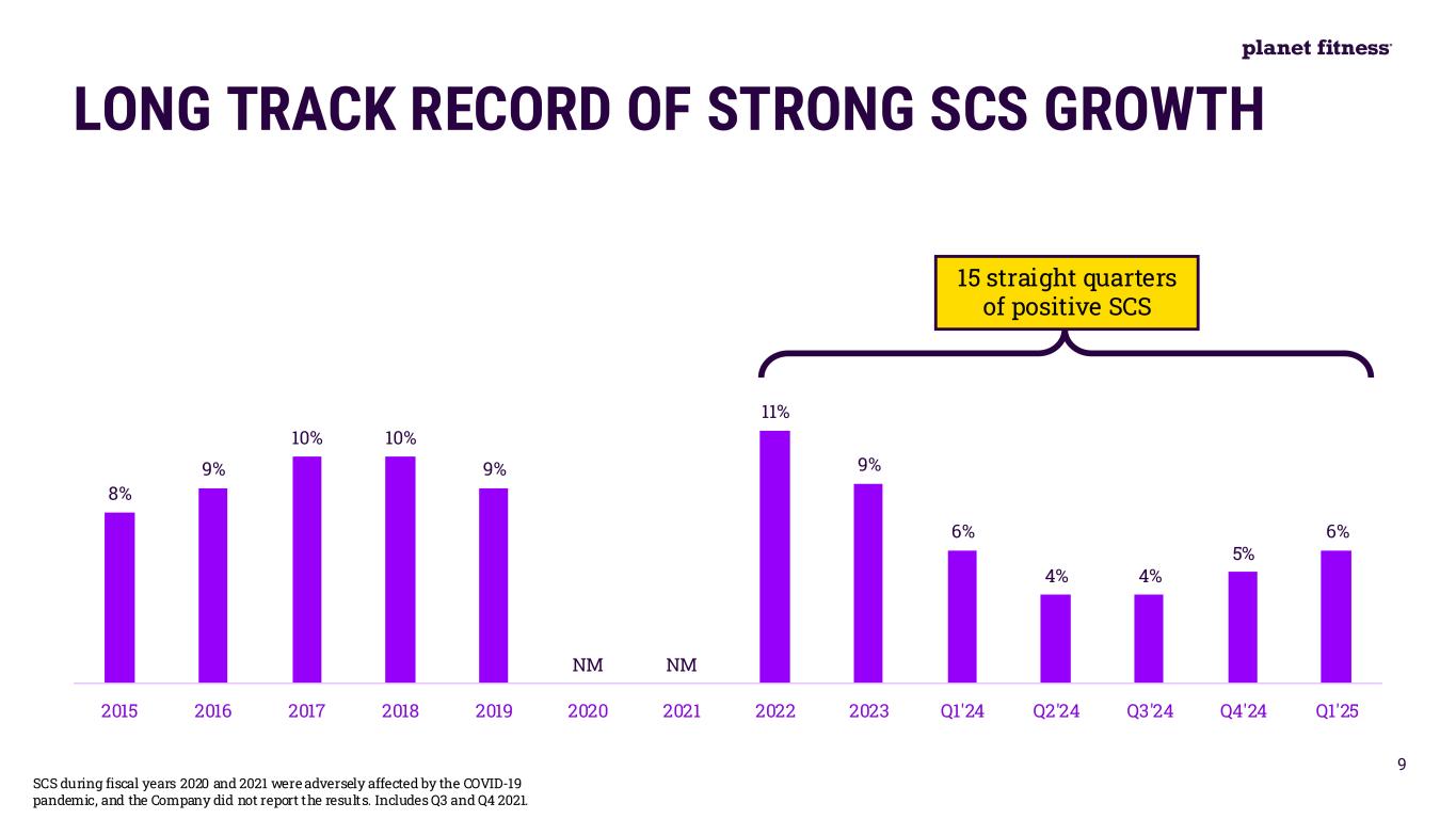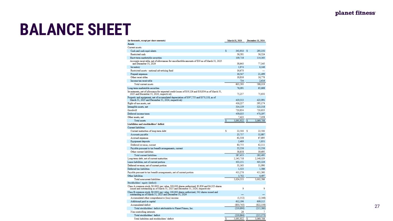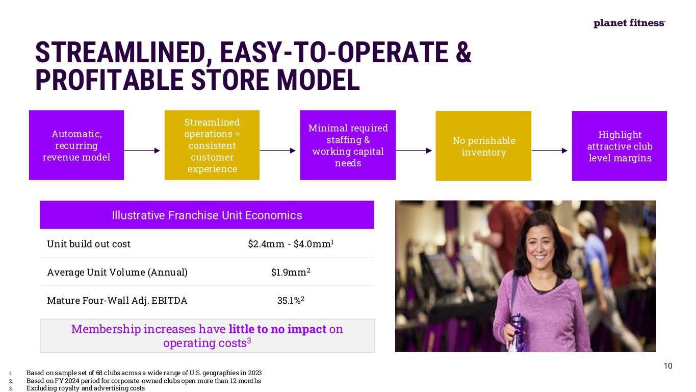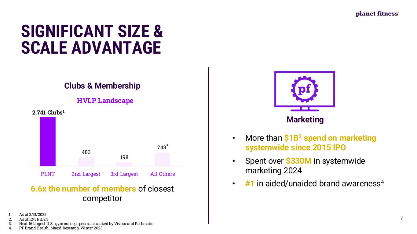 2 PRESENTATION OF FINANCIAL MEASURES & FORWARD-LOOKING STATEMENTS The financial information presented in this presentation includes non-GAAP financial measures such as Adjusted EBITDA, Segment Adjusted EBITDA and Adjusted net income per share,diluted to provide measures that we believe are useful to investors in evaluating the Company’s performance. These non-GAAP financial measures are supplemental measures of the Company’s performance that are neither required by, nor presented in accordance with GAAP. These financial measures should not be considered in isolation or as substitutes for GAAP financial measures such as net income or any other performance measures derived in accordance with GAAP. In addition, in the future, the Company may incur expenses or charges such as those added back to calculate these non-GAAP measures. The Company’s presentation of these non-GAAP measures should not be construed as an inference that the Company’s future results will be unaffected by similar amounts or other unusual or nonrecurring items. Same club sales refers to year-over-year sales comparisons for the same club sales base of both corporate-owned and franchisee-owned clubs, which is calculated for a given period by including only sales from clubs that had sales in the comparable months of both years. We define the same club sales base to include those clubs that have been open and for which monthly membership dues have been billed for longer than 12 months. We measure same club sales based solely upon monthly dues billed to members of our corporate-owned and franchisee-owned clubs. The non-GAAP financial measures used in our long-term growth targets will differ from their most directly comparable GAAP measures in ways similar to those in reconciliations the Company has previously provided in its disclosure with the Securities and Exchange Commission (SEC). We do not provide a reconciliation of growth targets for Adjusted EBITDA or Adjusted net income per share, diluted to the most directly comparable GAAP measure because we are not able to predict with reasonable certainty the amount or nature of all items that will be included for the applicable period. Accordingly, a reconciliation of the Company’s growth targets for these non-GAAP measures to the most directly comparable GAAP measure cannot be made available without unreasonable effort. These items are uncertain, depend on many factors and could have a material impact on our AdjustedEBITDA and Adjusted net income per share, diluted for the applicable period. This presentation contains “forward-looking statements” within the meaning of the federal securities laws, which involve risks and uncertainties. Forward-looking statements include the Company’s statements with respect to expected future performance presented under the heading “2025 Outlook,” the Company’s expected membership growth and club growth, share repurchases and the timing thereof, ability to deliver future shareholder value, and other statements, estimates and projections that do not relate solely to historical facts. Forward-looking statements can be identified by words such as “anticipate,” “believe,” “envision,” “estimate,” “expect,” “intend,” “may,” “might,” “goal,” “plan,” “prospect,” “predict,” “project,” “target,” “potential,” “assumption,” “will,” “would,” “could,” “should,” “continue,” “ongoing,” “contemplate,” “future,” “strategy” and similar references to future periods, although not all forward- looking statements include these identifying words. Forward-looking statements are not assurances of future performance. Instead, they are based only on the Company’s current beliefs, expectations and assumptions regarding the future of the business, future plans and strategies, projections, anticipated events and trends, the economy and other future conditions. Because forward-looking statements relate to the future, they are subject to inherent uncertainties, risks and changes in circumstances that are difficult to predict and many of which are outside of the Company’s control. Actual results and financial condition may differ materially from those indicated in the forward-looking statements. Important factors that could cause our actual results to differ materially include competition in the fitness industry, the Company’s and franchisees’ ability to attract and retain members, the Company’s and franchisees’ ability to identify and secure suitable sites for new franchise clubs, changes in consumer demand, changes in equipment costs, the Company’s ability to expand into new markets domestically and internationally, operating costs for the Company and franchisees generally, availability and cost of capital for franchisees, acquisition activity, developments and changes in laws and regulations, our substantial increased indebtedness as a result of our refinancing and securitization transactions and our ability to incur additional indebtedness or refinance that indebtedness in the future, our future financial performance and our ability to pay principal and interest on our indebtedness, our corporate structure and tax receivable agreements, failures, interruptions or security breaches of the Company's information systems or technology, general economic conditions and the other factors described in the Company’s annual report on Form 10-K for the year ended December 31, 2024 and the Company's quarterly report on Form 10-Q for the quarter ended March 31, 2025, as well as the Company’s other filings with the Securities and Exchange Commission. In light of the significant risks and uncertainties inherent in forward-looking statements, investors should not place undue reliance on forward-looking statements, which reflect the Company’s views only as of the date of this press release. Except as required by law, neither the Company nor any of its