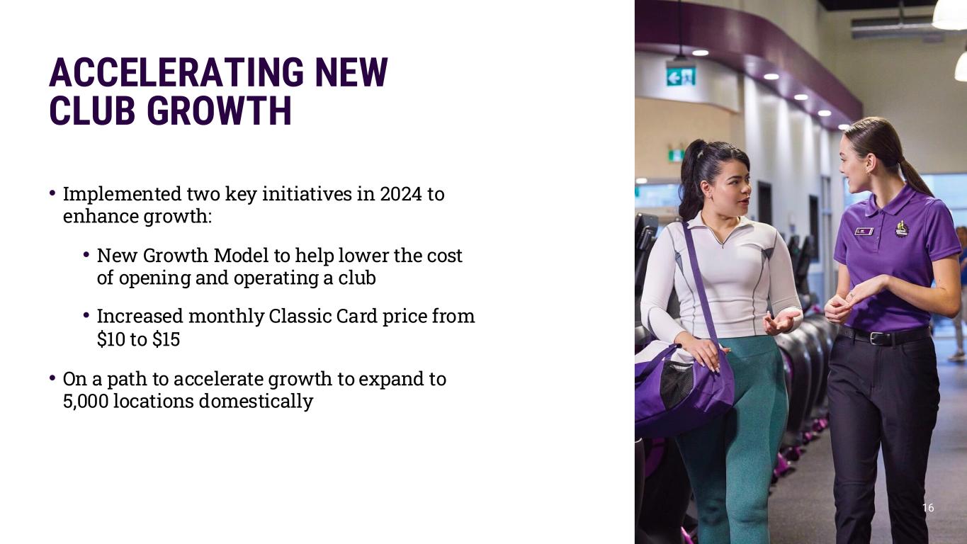 15 REFINING OUR PRODUCT & OPTIMIZING OUR FORMAT • Moving clubs to a more balanced footprint of cardio and strength equipment • More than 60% of franchisees opted-in to adding additional strength equipment in 2024 • Option to remove 30-minute workout area to create space for more functional training