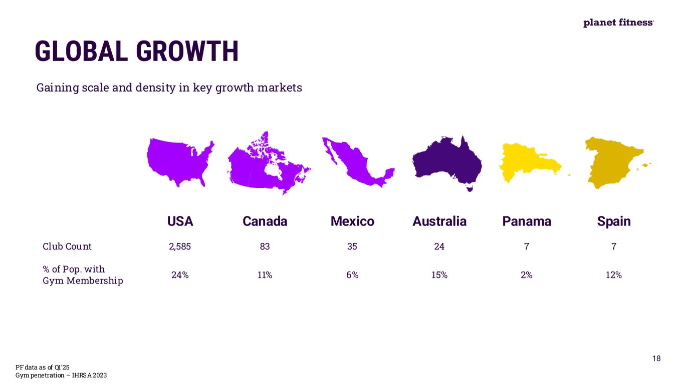 17 New Model Previous Model Franchise Agreements • 12- year Franchise Agreement • $0 Initial Fee3 • Remodel at Renewal – Year 12 • $20K Renewal Fee • 10-year Franchise Agreement • $20K Initial Fee • Remodel at Renewal – Year 10 • $20K Renewal Fee • Cardio Re-Equip Years 5, 6, 7 • Strength Re-Equip Year 7, 8, 9 • Cardio Re-Equip Year 5 • Strength Re-Equip Year 7 • Targeted 5-10% Reduction for New Club Investment • Targeted 5-10% Reduction for Remodel • New Club Capital ~$3M • Remodel ~$1M • 6-Month Cure Periods • Limited 12-Month Grace Periods • Percentage-Based Fee or all Joins (regardless of join channel) • $5 Web Join Fee on all Digital out of club joins NEW GROWTH MODEL Focused on enhancing Planet Fitness’s already strong new club economics and reducing capital requirements for opening and operating a Planet Fitness franchise location. Re-Equips1 Initial Investment2 Area Development Agreements Join Fee 1. Determined based on club usage. 2. Inclusive of initial franchise fee. 3. For franchise agreements in an Area Development Agreement.