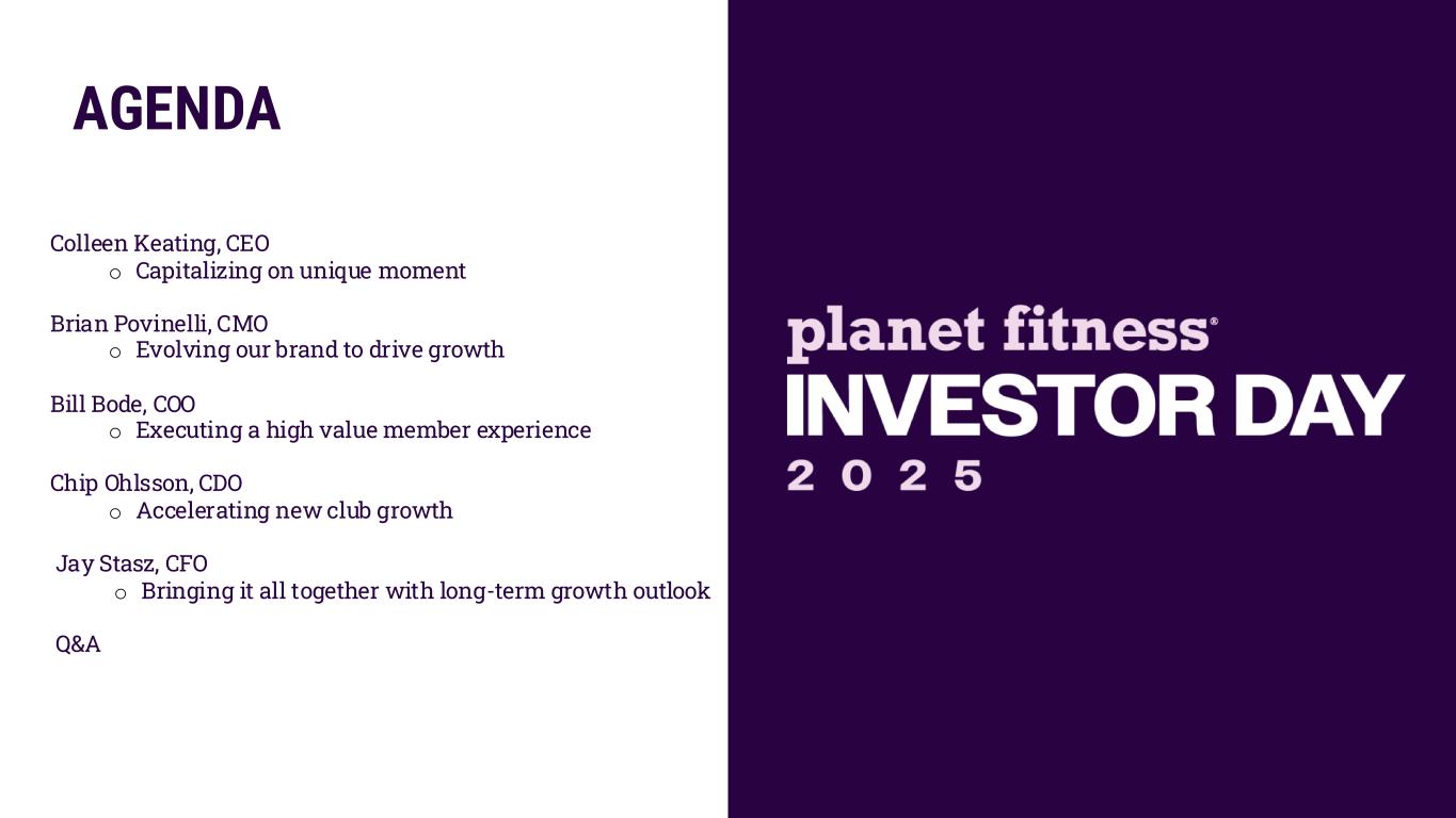 Colleen Keating, CEO o Capitalizing on unique moment Brian Povinelli, CMO o Evolving our brand to drive growth Bill Bode, COO o Executing a high value member experience Chip Ohlsson, CDO o Accelerating new club growth Jay Stasz, CFO o Bringing it all together with long-term growth outlook Q&A AGENDA