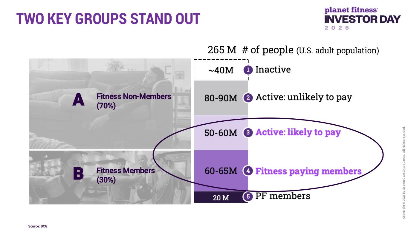 Co py ri gh t © 2 02 5 by B os to n C on su lt in g G ro up . A ll ri gh ts r es er ve d. TWO KEY GROUPS STAND OUT Fitness Non-Members (70%)A Fitness Members (30%)B 265 M # of people (U.S. adult population) 1. Source: BCG