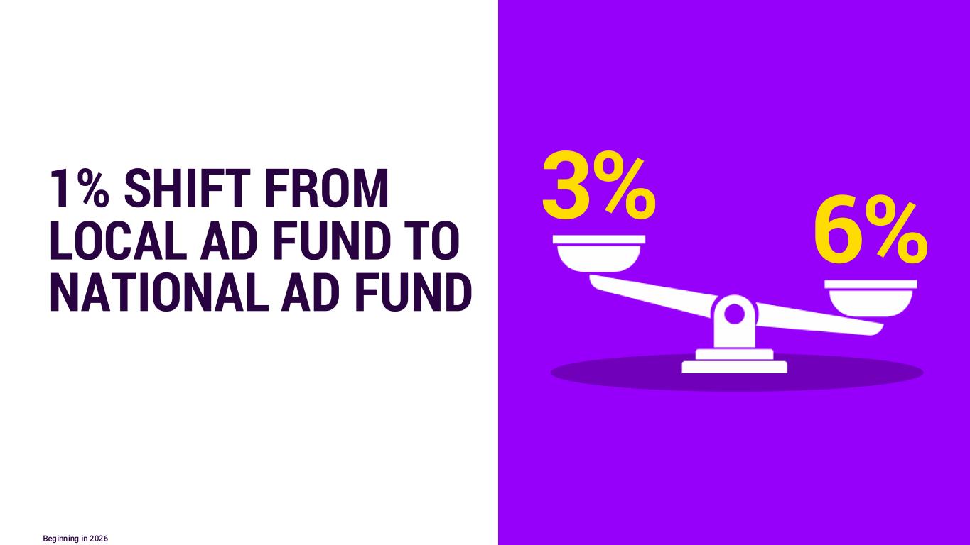 1% SHIFT FROM LOCAL AD FUND TO NATIONAL AD FUND 3% 6% Beginning in 2026