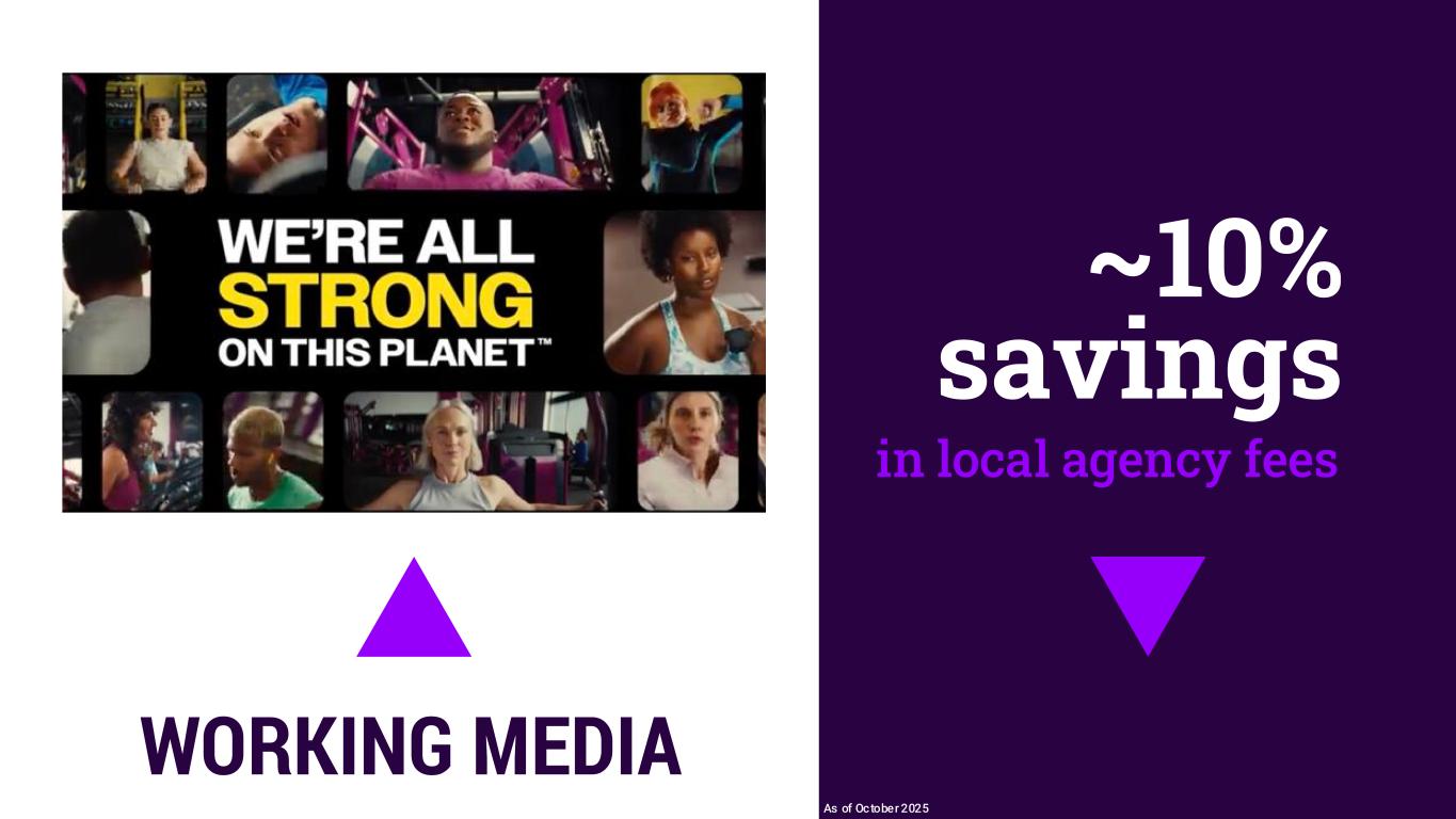 WORKING MEDIA ~10% savings in local agency fees As of October 2025