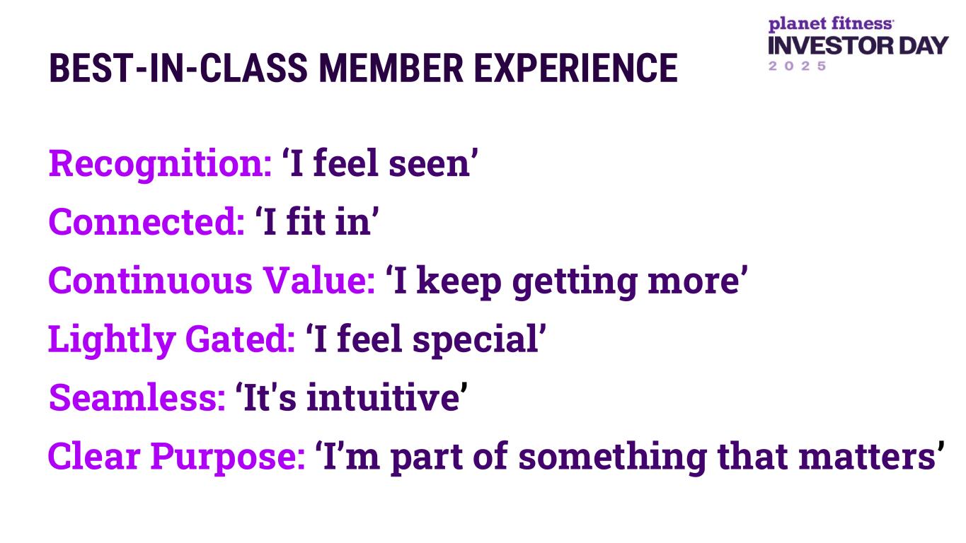 Recognition: ‘I feel seen’ Connected: ‘I fit in’ Continuous Value: ‘I keep getting more’ Lightly Gated: ‘I feel special’ Seamless: ‘It's intuitive’ Clear Purpose: ‘I’m part of something that matters’ BEST-IN-CLASS MEMBER EXPERIENCE