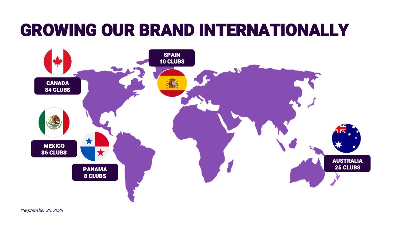 SPAIN 10 CLUBS GROWING OUR BRAND INTERNATIONALLY *September 30, 2025 CANADA 84 CLUBS MEXICO 36 CLUBS PANAMA 8 CLUBS AUSTRALIA 25 CLUBS