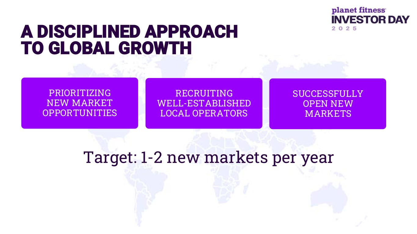 A DISCIPLINED APPROACH TO GLOBAL GROWTH PRIORITIZING NEW MARKET OPPORTUNITIES RECRUITING WELL-ESTABLISHED LOCAL OPERATORS SUCCESSFULLY OPEN NEW MARKETS Target: 1-2 new markets per year