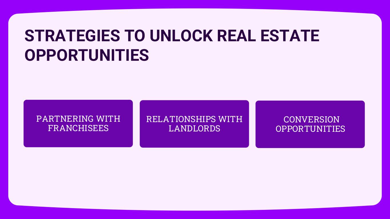 STRATEGIES TO UNLOCK REAL ESTATE OPPORTUNITIES PARTNERING WITH FRANCHISEES RELATIONSHIPS WITH LANDLORDS CONVERSION OPPORTUNITIES