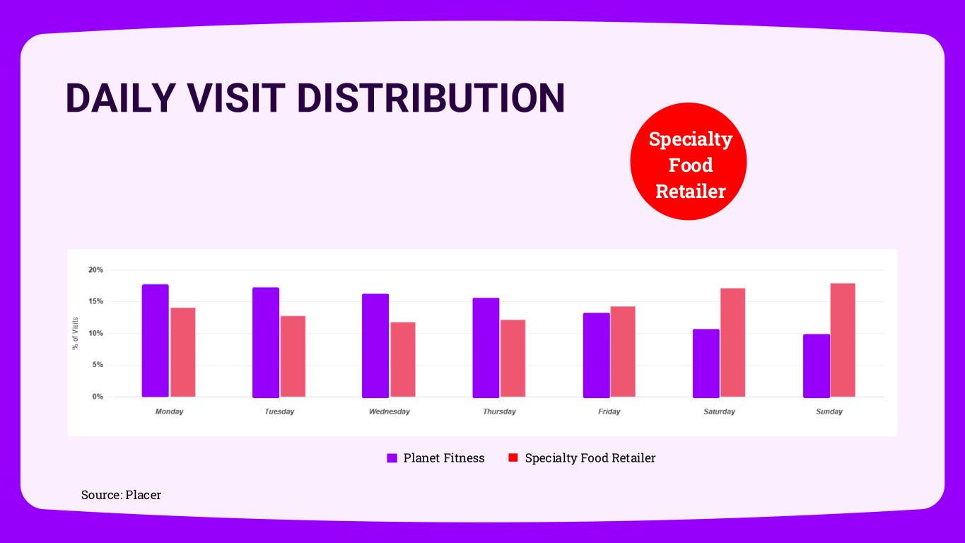 DAILY VISIT DISTRIBUTION Specialty Food Retailer Planet Fitness Specialty Food Retailer Source: Placer