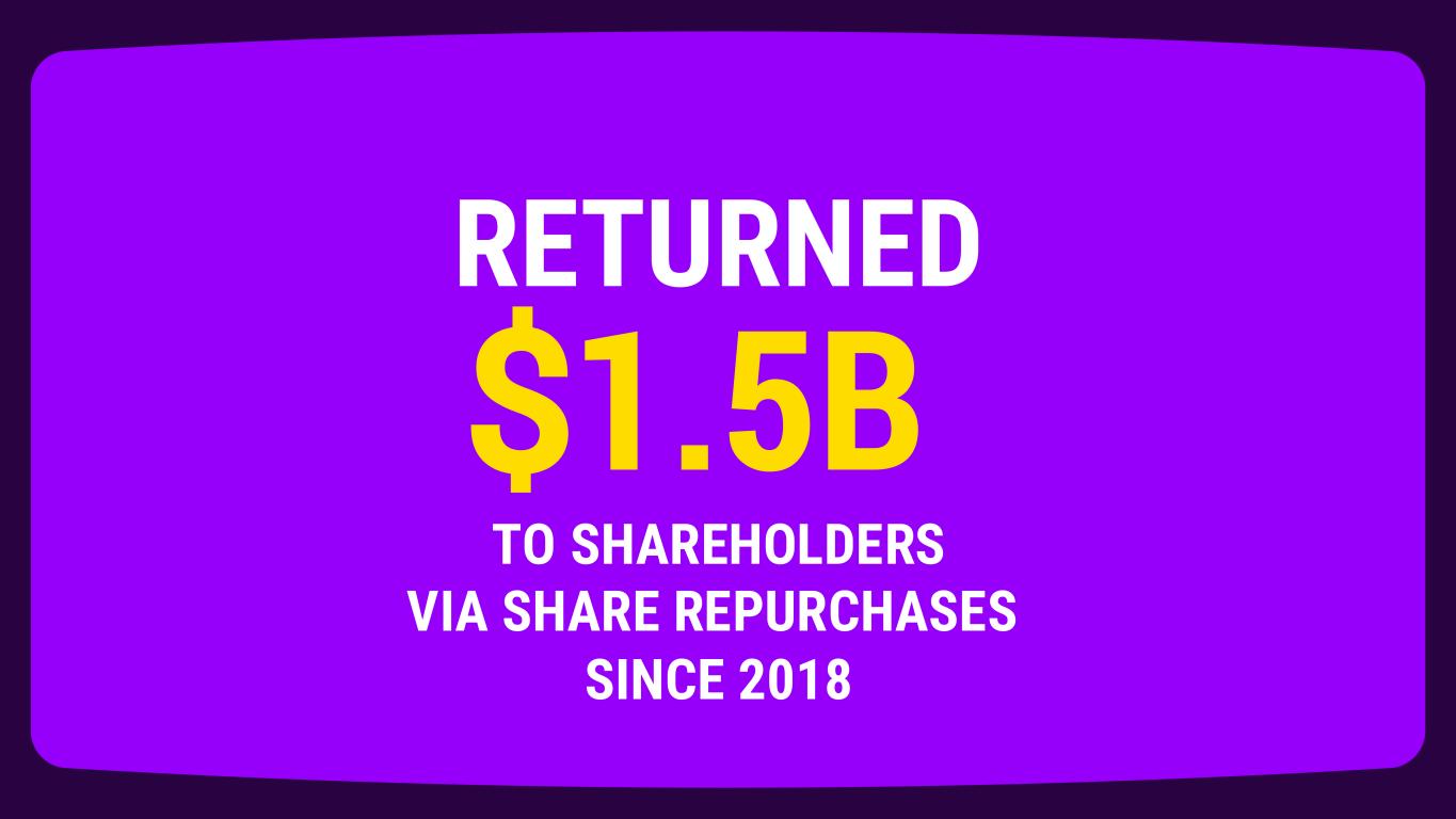 RETURNED TO SHAREHOLDERS VIA SHARE REPURCHASES SINCE 2018 $1.5B