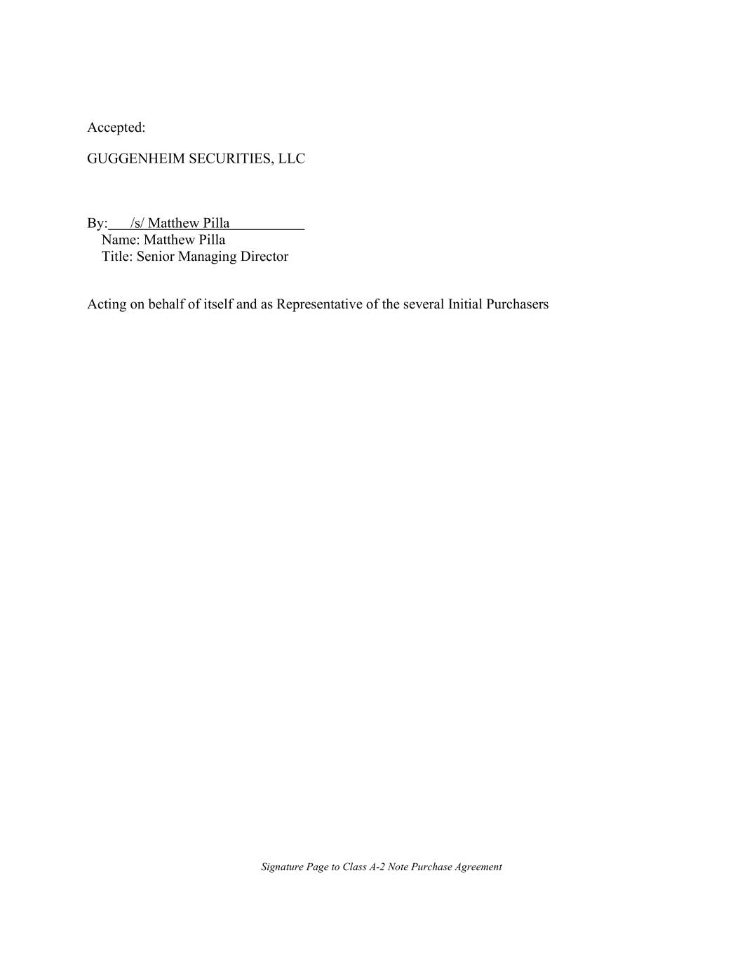 Signature Page to Class A-2 Note Purchase Agreement Accepted: GUGGENHEIM SECURITIES, LLC By: /s/ Matthew Pilla Name: Matthew Pilla Title: Senior Managing Director Acting on behalf of itself and as Representative of the several Initial Purchasers