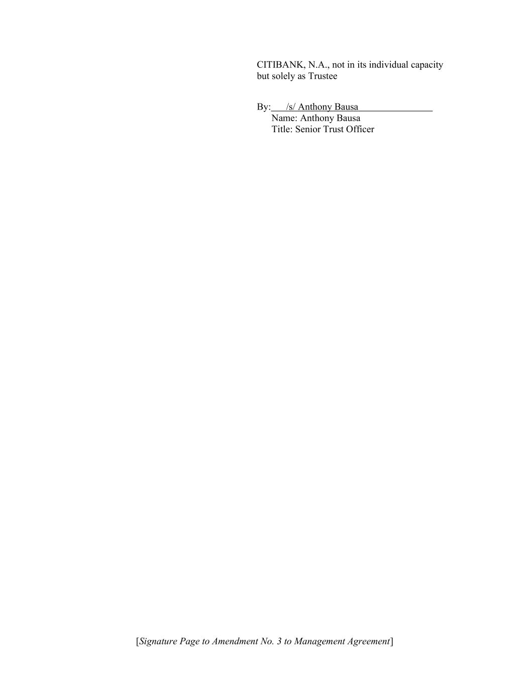 [Signature Page to Amendment No. 3 to Management Agreement] CITIBANK, N.A., not in its individual capacity but solely as Trustee By: /s/ Anthony Bausa Name: Anthony Bausa Title: Senior Trust Officer