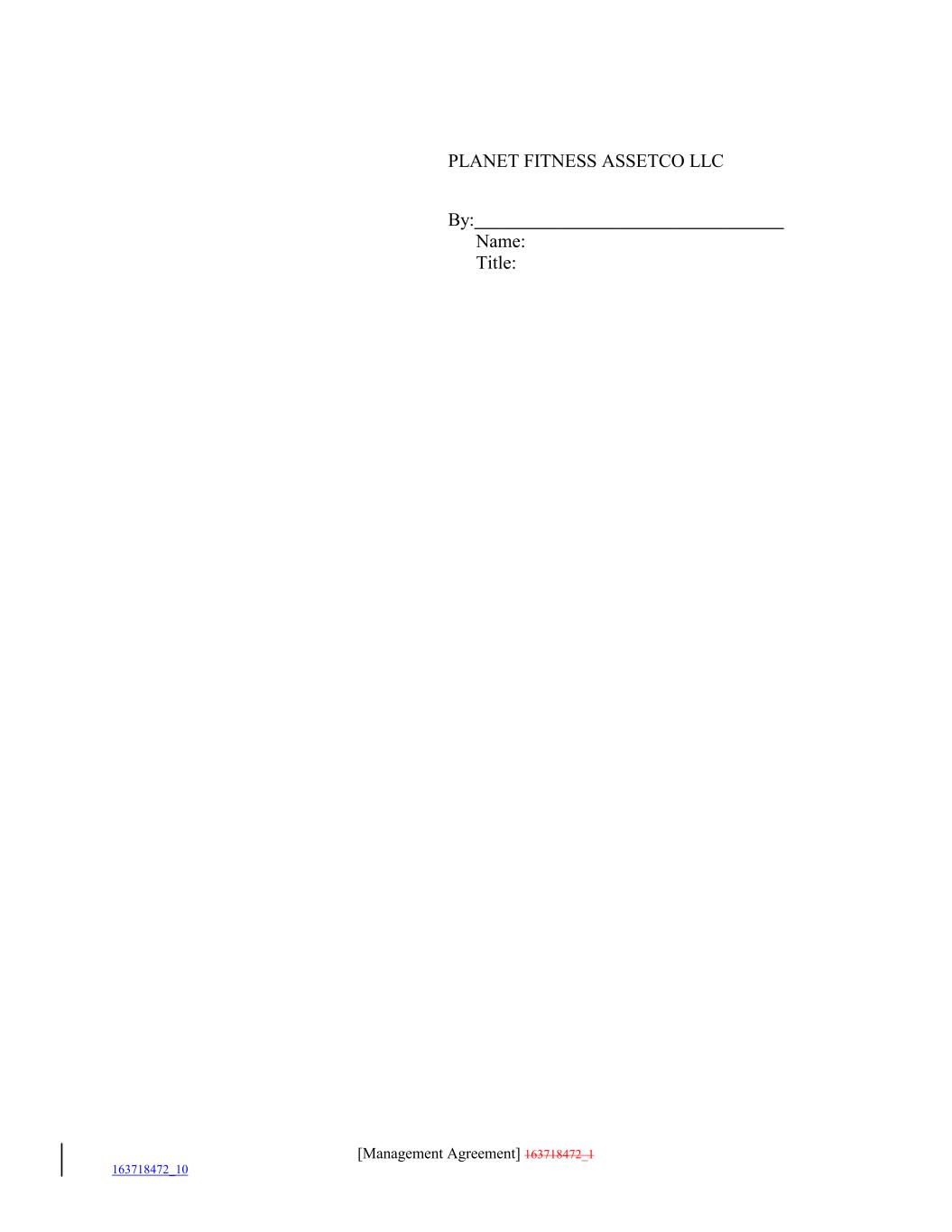 PLANET FITNESS ASSETCO LLC By: Name: Title: [Management Agreement] 163718472_1 163718472_10