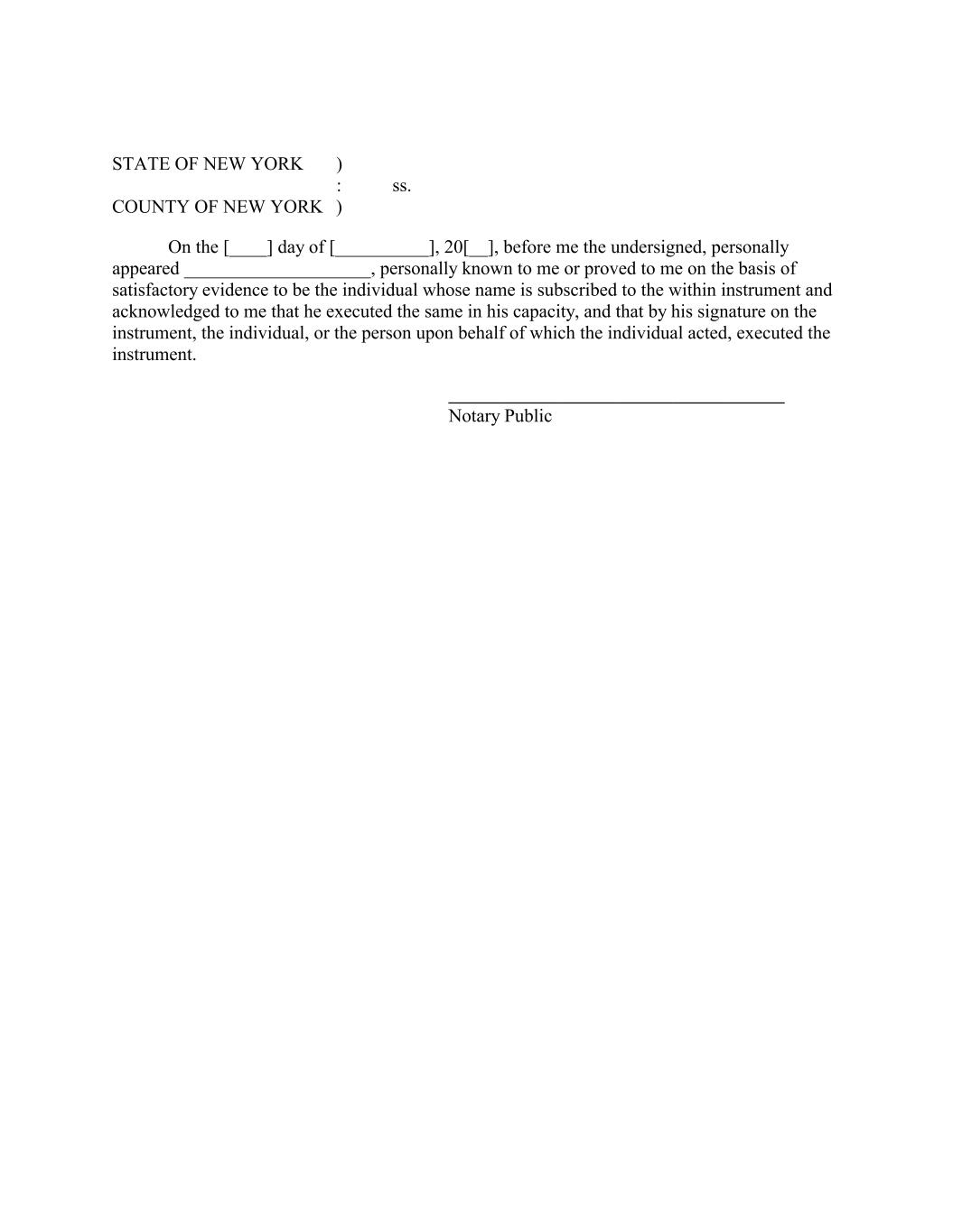 STATE OF NEW YORK ) : ss. COUNTY OF NEW YORK ) On the [____] day of [__________], 20[__], before me the undersigned, personally appeared ____________________, personally known to me or proved to me on the basis of satisfactory evidence to be the individual whose name is subscribed to the within instrument and acknowledged to me that he executed the same in his capacity, and that by his signature on the instrument, the individual, or the person upon behalf of which the individual acted, executed the instrument. Notary Public