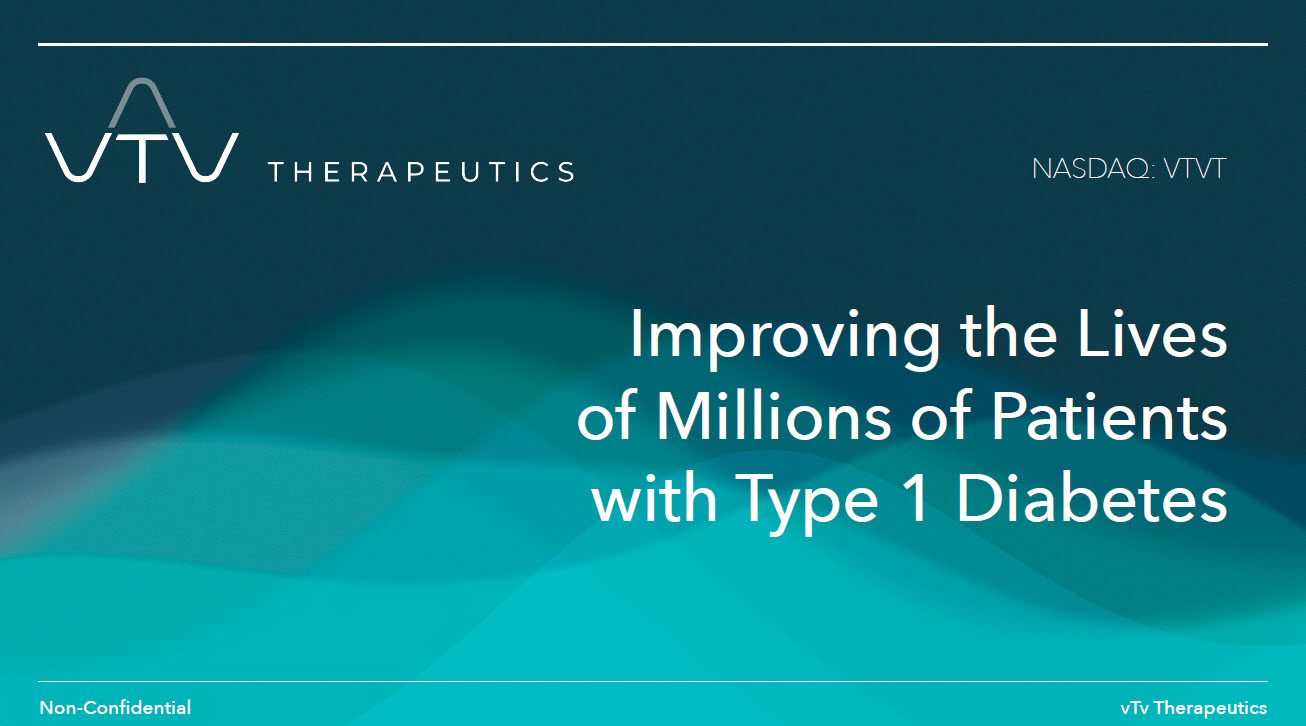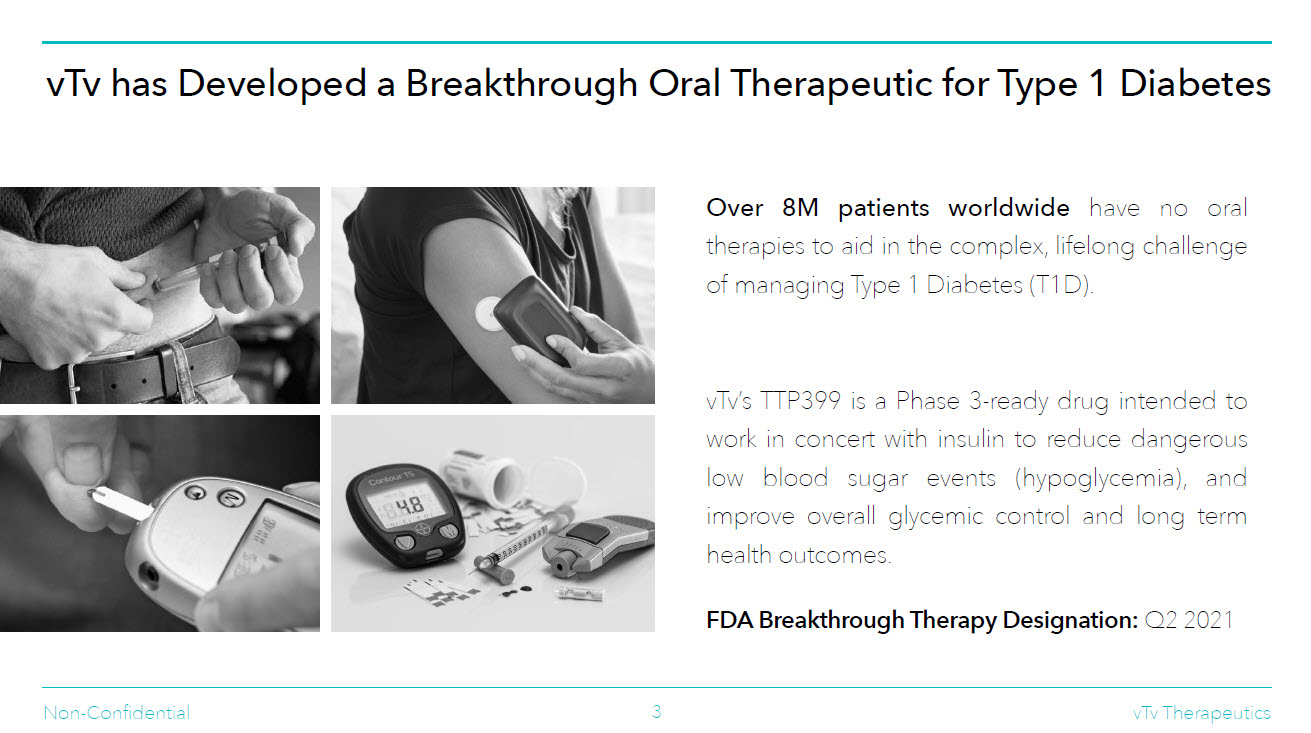 NASDAQ: VTVT Improving the Lives of Millions of Patients with Type 1 Diabetes Non - Confidential vTv Therapeutics