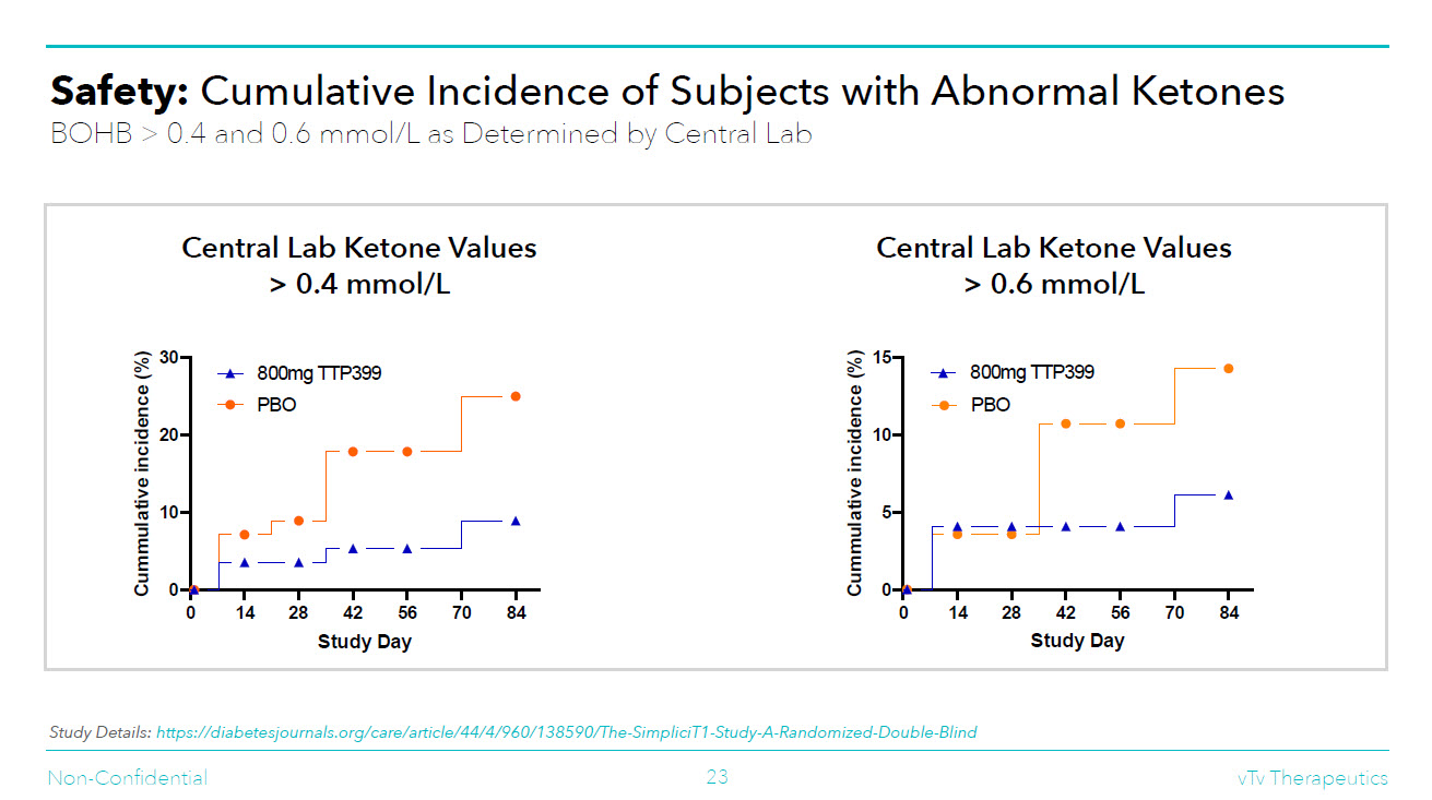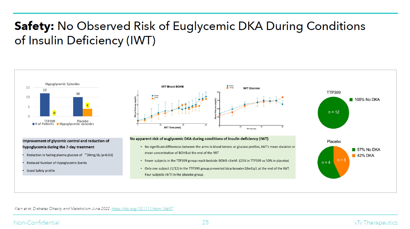 Safety: No Observed Risk of Euglycemic DKA During Conditions of Insulin Deficiency (IWT) Klein et at. Diabetes Obesity and Metabolism June 2022. https://doi.org/10.1111/dom.14697 25 Non - Confidential vTv Therapeutics