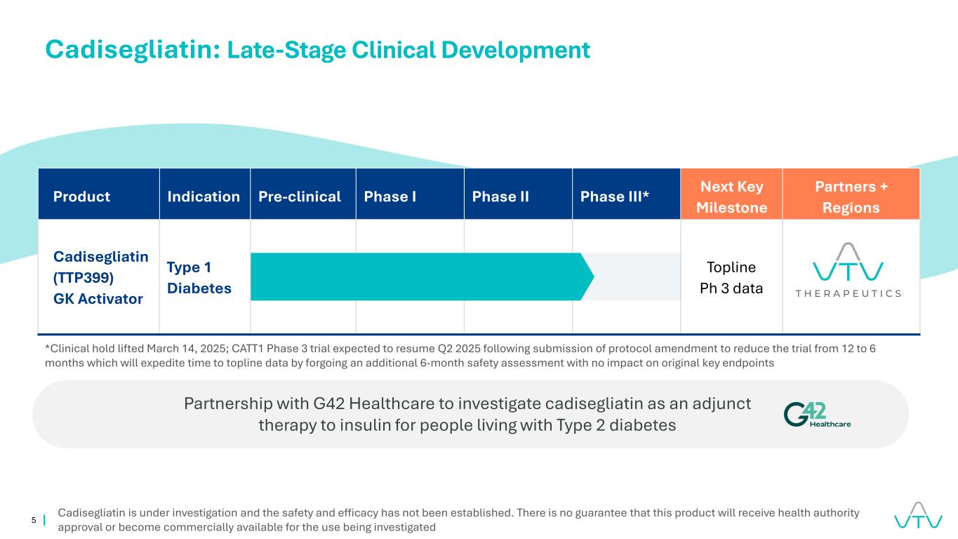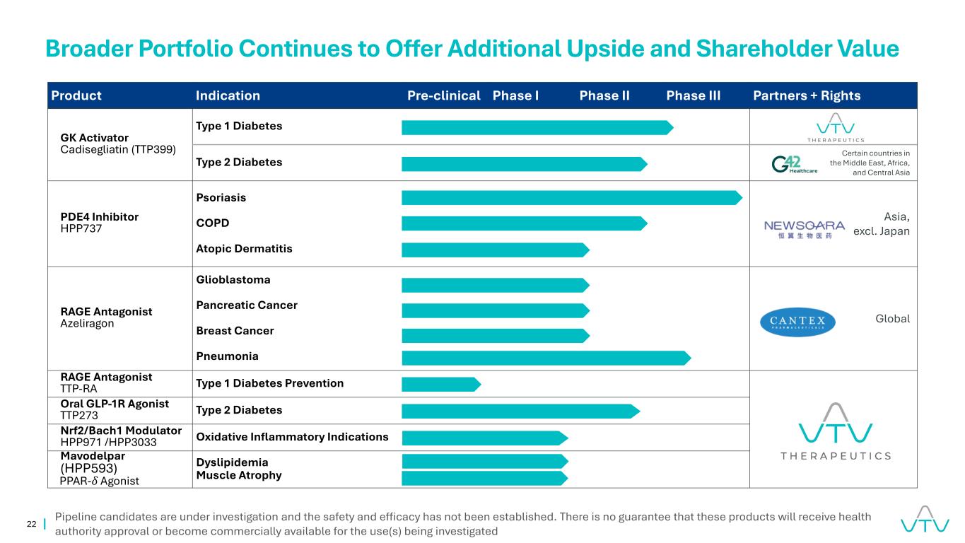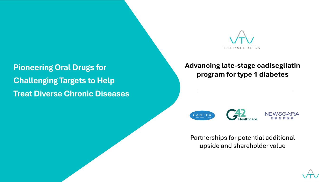 3 Pioneering Oral Drugs for Challenging Targets to Help Treat Diverse Chronic Diseases Advancing late-stage cadisegliatin program for type 1 diabetes Partnerships for potential additional upside and shareholder value