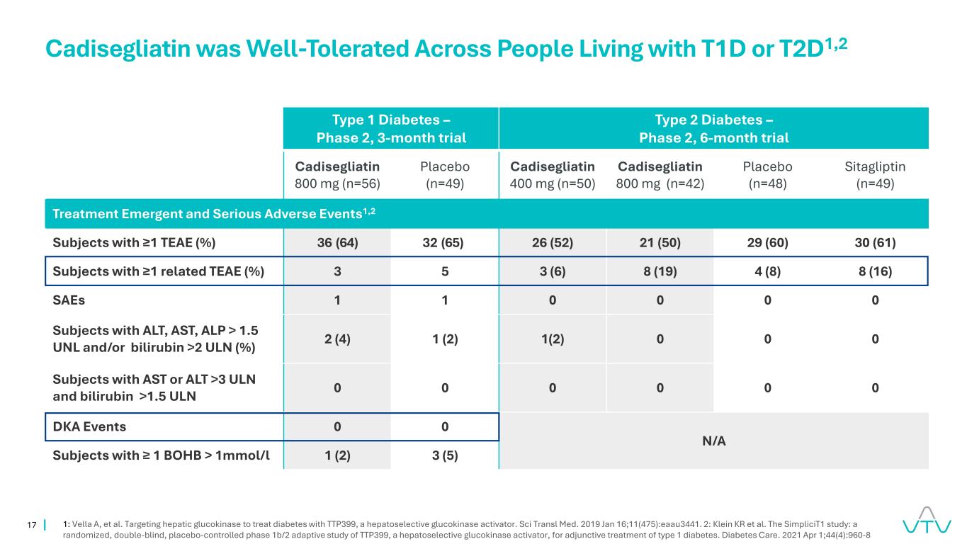 16 No Observed Increased Risk of Ketoacidosis with Cadisegliatin vs. Insulin Alone1 SimpliciT1 Phase 2 Trial in patients with T1D Abnormal Ketones > 0.4 mmol/L Abnormal Ketones > 0.6 mmol/L 1: Klein KR et al. The SimpliciT1 study: a randomized, double-blind, placebo-controlled phase 1b/2 adaptive study of TTP399, a hepatoselective glucokinase activator, for adjunctive treatment of type 1 diabetes. Diabetes Care. 2021 Apr 1;44(4):960-8