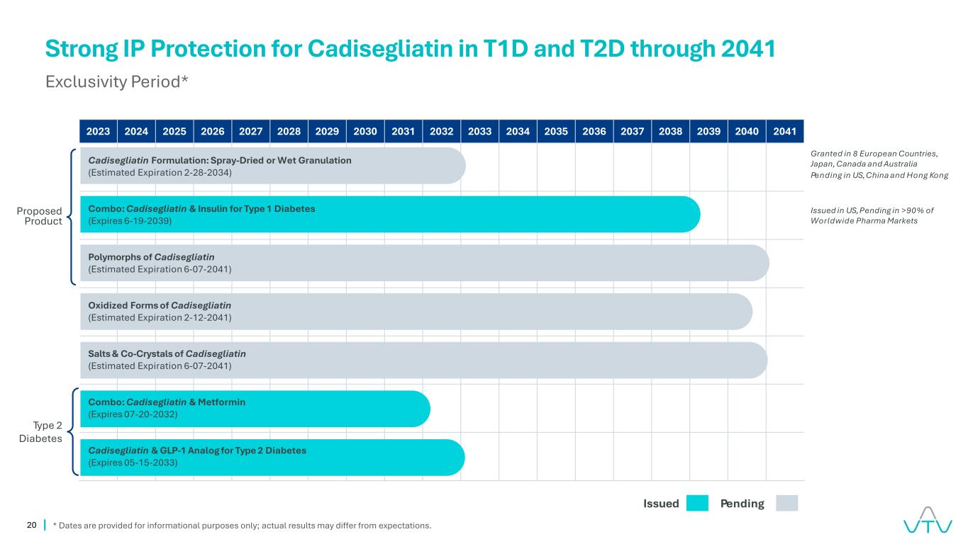 20 2023 2024 2025 2026 2027 2028 2029 2030 2031 2032 2033 2034 2035 2036 2037 2038 2039 2040 2041 Issued Pending Strong IP Protection for Cadisegliatin in T1D and T2D through 2041 Exclusivity Period* * Dates are provided for informational purposes only; actual results may differ from expectations. Issued in US,Pending in >90% of Worldwide Pharma Markets Granted in 8 European Countries, Japan, Canada and Australia Pending in US, China and Hong Kong Cadisegliatin Formulation: Spray-Dried or Wet Granulation (Estimated Expiration 2-28-2034) Combo: Cadisegliatin & Insulin for Type 1 Diabetes (Expires 6-19-2039) Polymorphs of Cadisegliatin (Estimated Expiration 6-07-2041) Oxidized Forms of Cadisegliatin (Estimated Expiration 2-12-2041) Salts & Co-Crystals of Cadisegliatin (Estimated Expiration 6-07-2041) Combo: Cadisegliatin & Metformin (Expires 07-20-2032) Cadisegliatin & GLP-1 Analog for Type 2 Diabetes (Expires 05-15-2033) Proposed Product Type 2 Diabetes