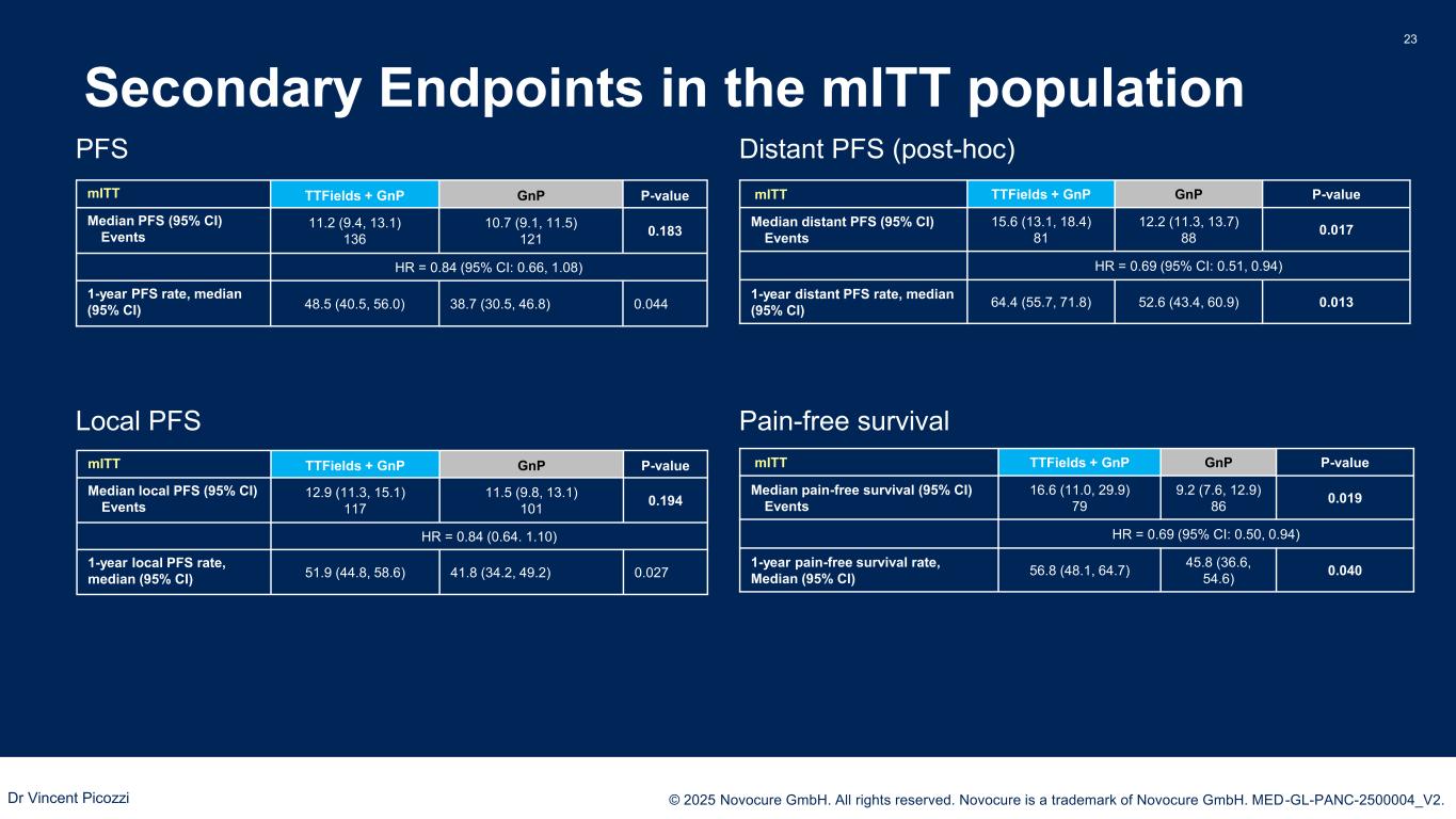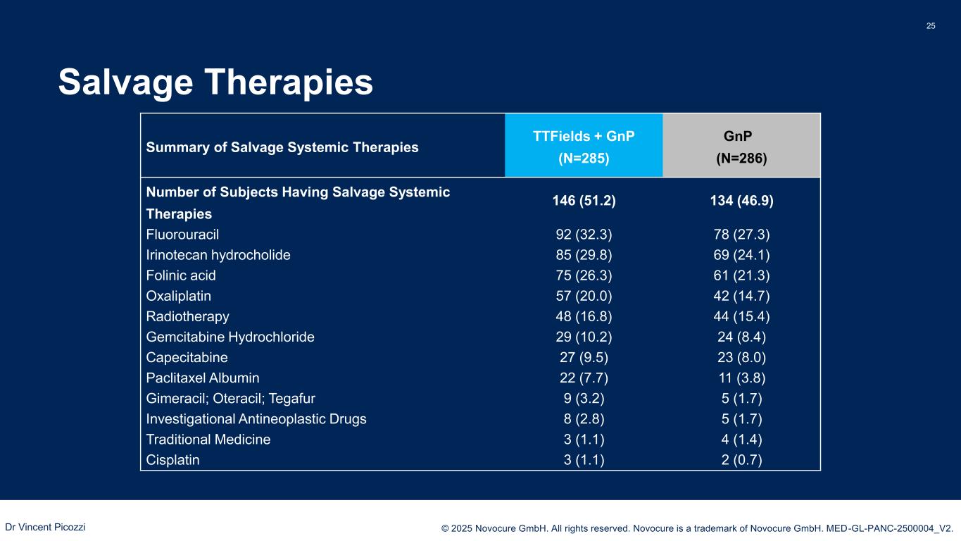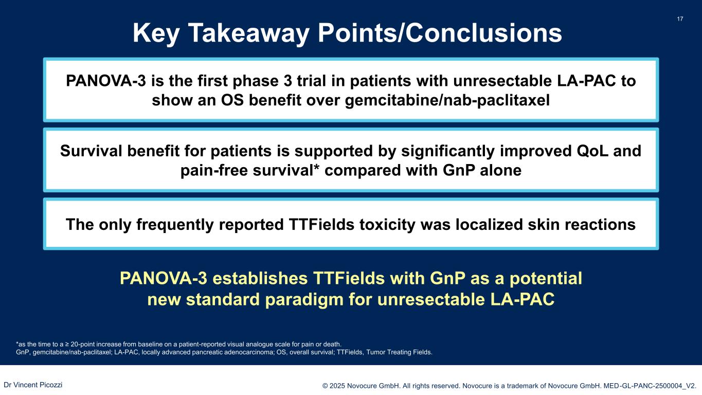PRESENTED BY: © 2025 Novocure GmbH. All rights reserved. Novocure is a trademark of Novocure GmbH. MED-GL-PANC-2500004_V2. 20 Appendix Dr Vincent Picozzi