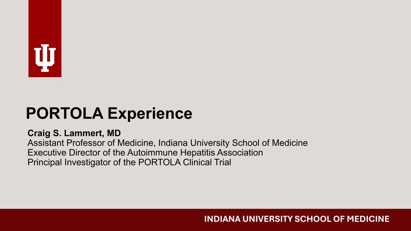 INDIANA UNIVERSITY SCHOOL OF MEDICINE PORTOLA Experience Craig S. Lammert, MD Assistant Professor of Medicine, Indiana University School of Medicine Executive Director of the Autoimmune Hepatitis Association Principal Investigator of the PORTOLA Clinical Trial