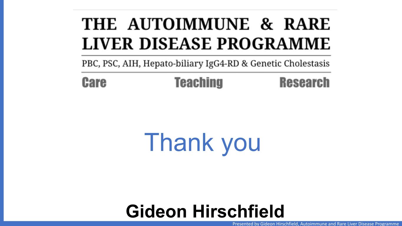 Presented by Gideon Hirschfield, Autoimmune and Rare Liver Disease Programme Thank you Gideon Hirschfield