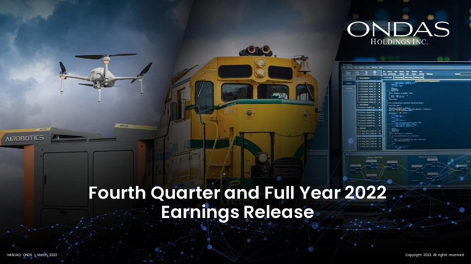 Fourth Quarter and Full Year 2022 Earnings Release Copyright 2023. All rights reserved. NASDAQ: ONDS | March 2023