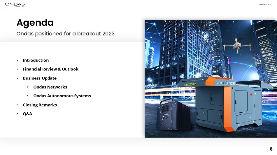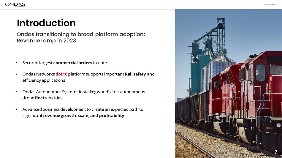 Nasdaq: ONDS Ondas positioned for a breakout 2023 Agenda • Introduction • Financial Review & Outlook • Business Update • Ondas Networks • Ondas Autonomous Systems • Closing Remarks • Q&A 6