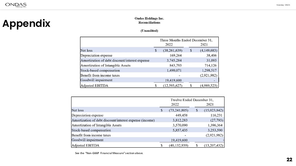 Nasdaq: ONDS 22 Appendix See the “Non - GAAP Financial Measure” section above.