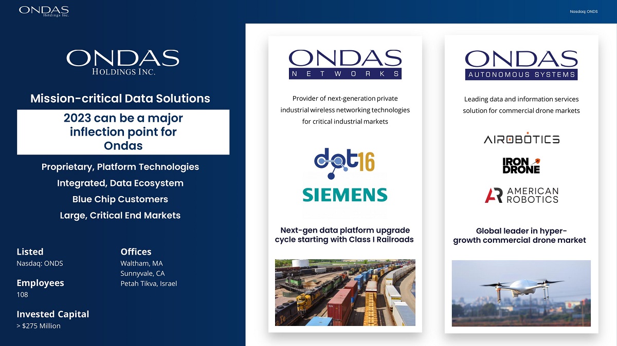 Nasdaq: ONDS 1 Autonomous Drones, Data, and AI Copyright 2023. All rights reserved. NASDAQ: ONDS | July 2023
