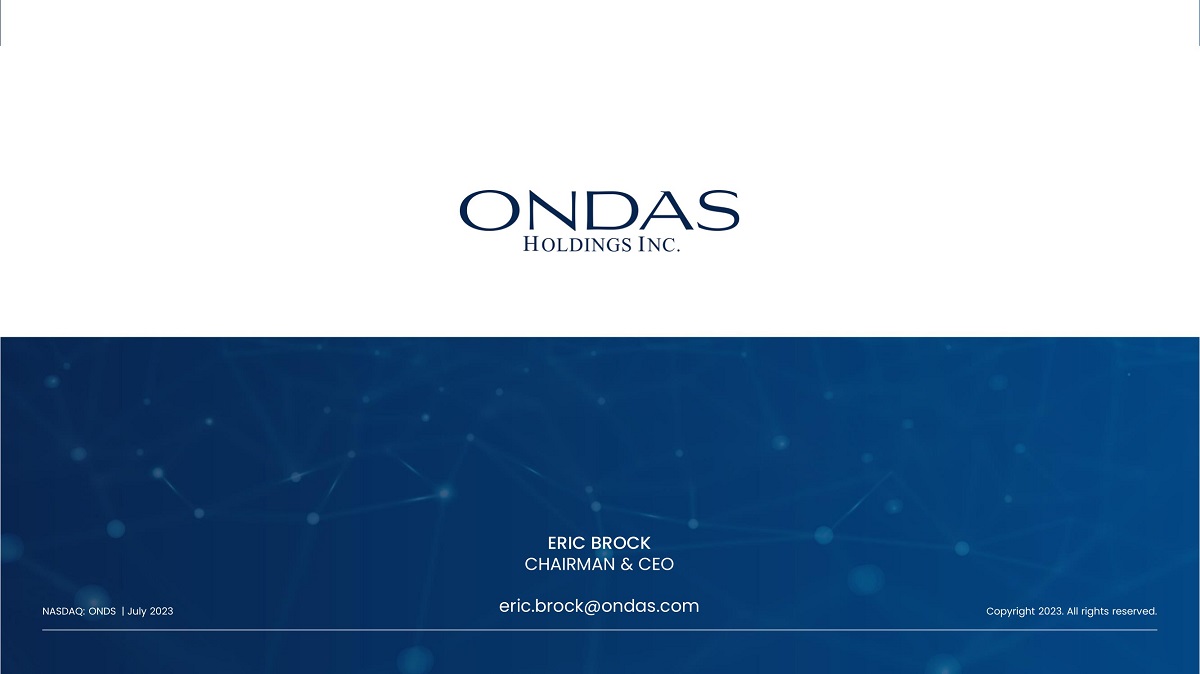 Nasdaq: ONDS 23 ERIC BROCK CHAIRMAN & CEO eric.brock@ondas.com Copyright 2023. All rights reserved. NASDAQ: ONDS | July 2023