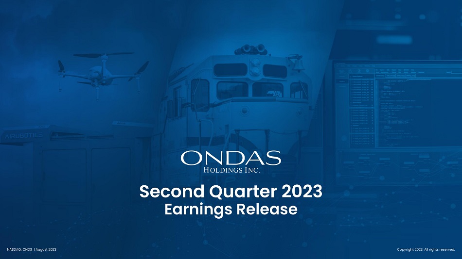 Second Quarter 2023 Earnings Release Copyright 2023. All rights reserved. NASDAQ: ONDS | August 2023