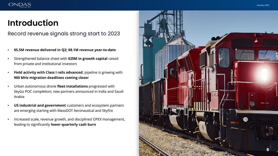 Nasdaq: ONDS Agenda 5 Ondas on track for a breakout 2023 • Introduction • Financial Review & Outlook • Business Update • Ondas Networks • Ondas Autonomous Systems (OAS) • Closing Remarks • Q&A