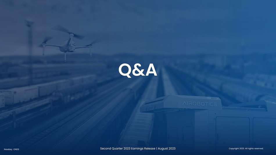Q&A Second Quarter 2023 Earnings Release | August 2023 Copyright 2023. All rights reserved. Nasdaq : ONDS