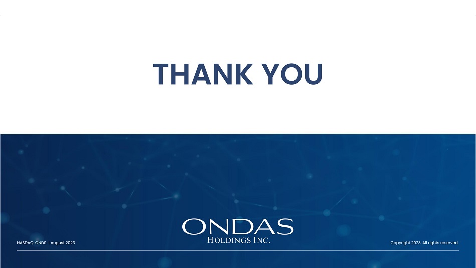 Nasdaq: ONDS 24 Copyright 2023. All rights reserved. NASDAQ: ONDS | August 2023 THANK YOU